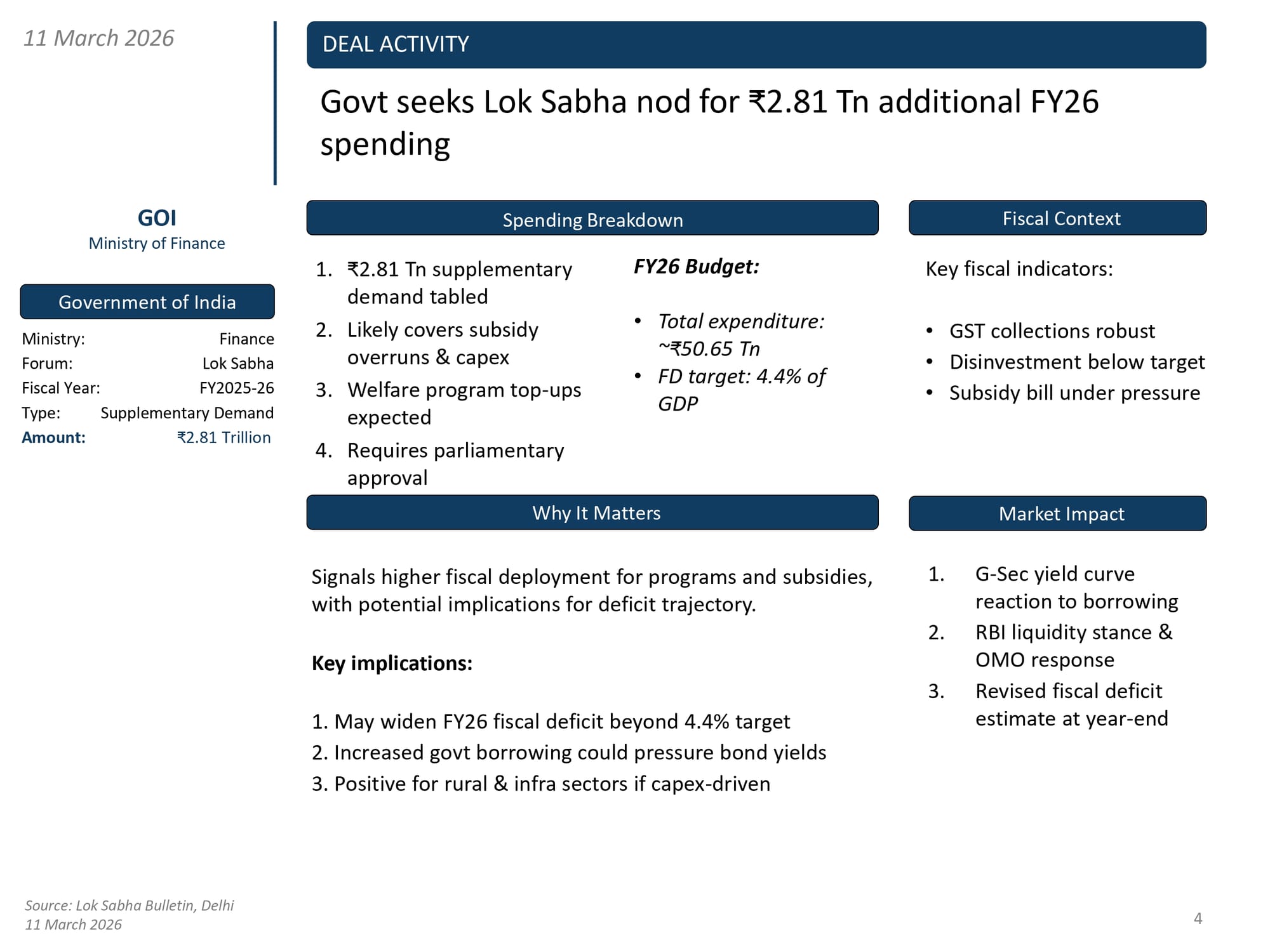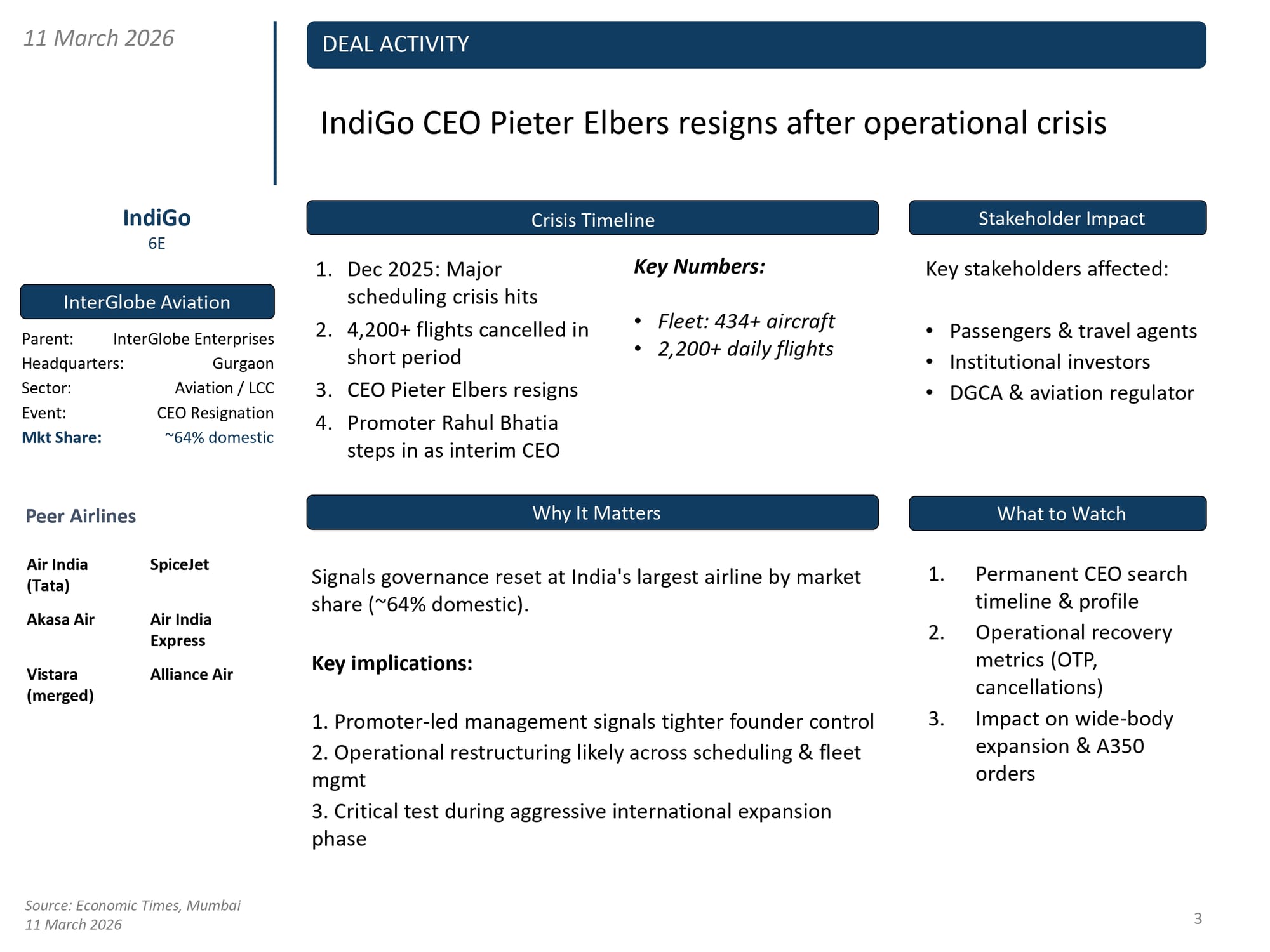 Deal Activity, 11 March